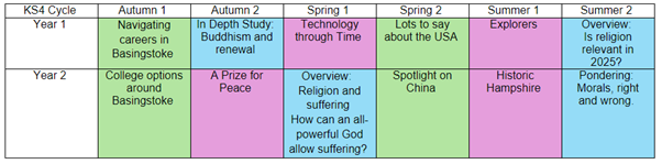 Pupils explore local, national, and international content within the History topics. The curriculum aims to deepen pupils’ understanding of Britain’s past and that of the wider world, with an emphasis on topics that have shaped and informed modern day living. Pupils study a range of notable people, places and events, and topics explored in Key Stage 4 build on the knowledge, skills and understanding covered in Key Stage 3. e.g. Historic Hampshire, taught in KS4, builds on prior learning within Looking Back at Basingstoke in KS3. The KS4 topic has a wider scope and considers a greater area than the KS3 topic.